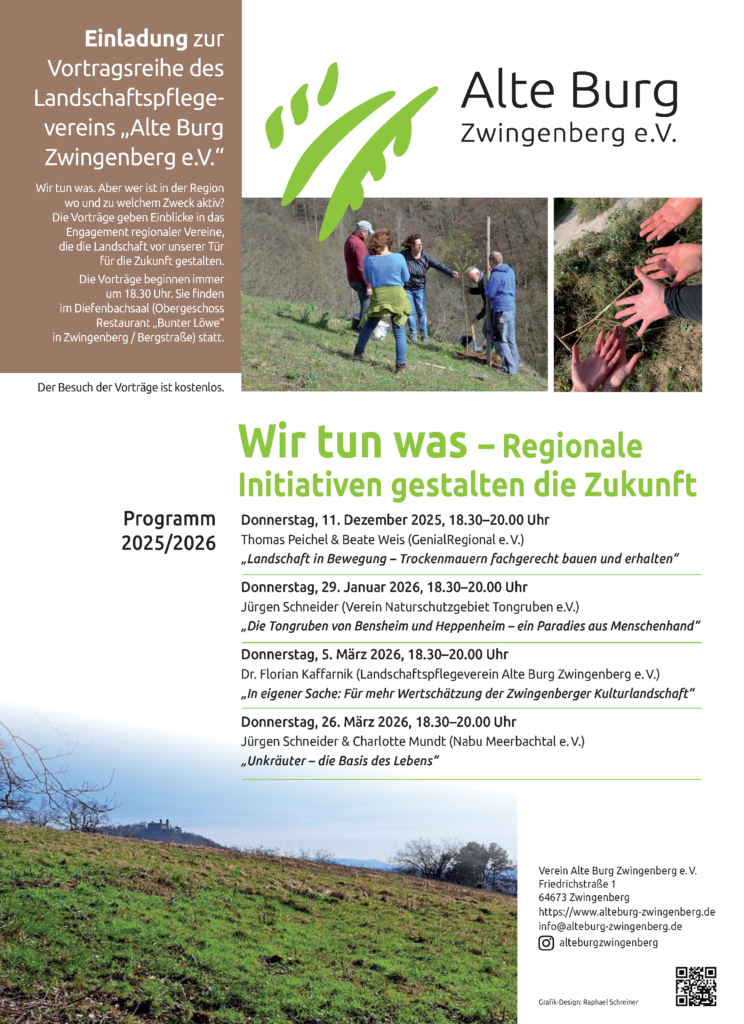 „In eigener Sache: Für mehr Wertschätzung der Zwingenberger Kulturlandschaft“ (Vortrag im Rahmen der Vortragsreihe des Vereins: Wir tun was – Regionale Initiativen gestalten die Zukunft)